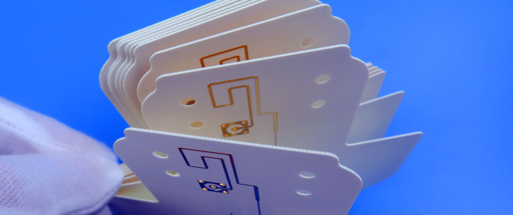 This 3-layer high-frequency PCB is built using two cores of RO4350B, with one copper layer etched away, resulting in three functional layers.